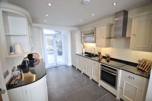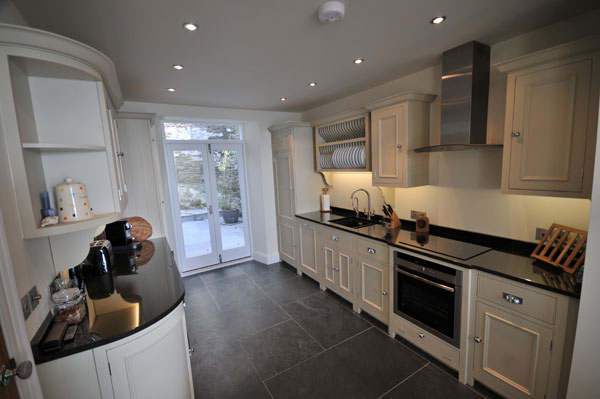 Along with a new roof, windows and doors, the property had two new bathrooms installed, a new gas central heating and pressurised water storage system, slate flooring, with electric under floor heating, a new kitchen, external stone paving and complete redecoration.